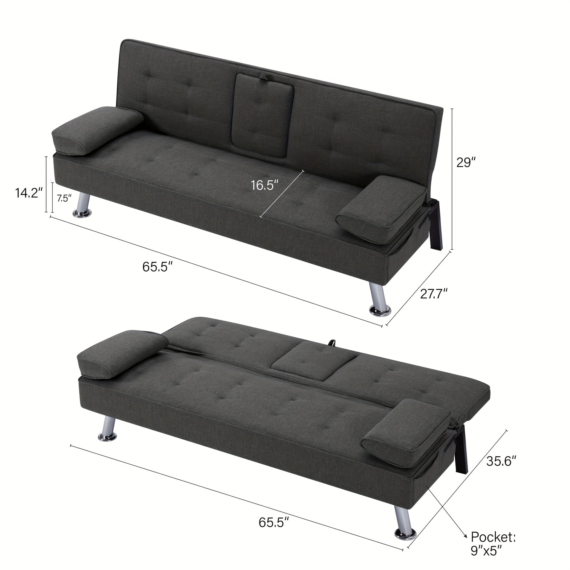 Measuring 65.5 inches, this futon sofa bed blends comfort, versatility, and contemporary style — a perfect fit for bedrooms, apartments, offices, or guest spaces.